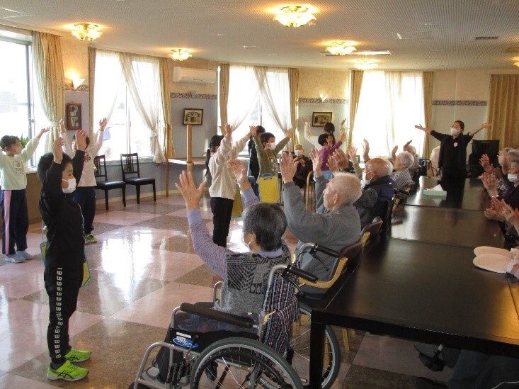会の最後にはお得意の“ドンパン節”や“炭坑節”を100歳とは思えない程の大きな声で披露され、それに合わせて一緒に踊り、とても賑やかな会になりました。
