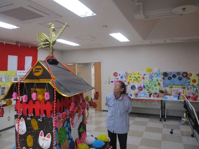 「この飾り、とてもキレイにできてるねぇ」「立派なお神輿だなぁ」と感心されていました。