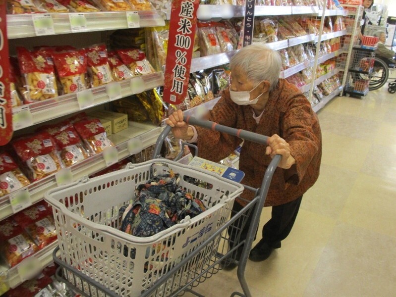 「普段は買い物に来ることはないんだよ」と話される利用者様も多く、皆さま真剣な眼差しで商品棚を眺め、品物を吟味されています👀