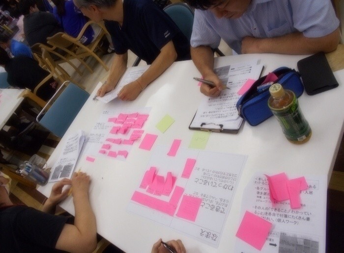 グループワークでは、新しい認知症観について、各グループで「こういうのもあるよね」「これもでしょ」等と積極的に意見を出し合っていました。
