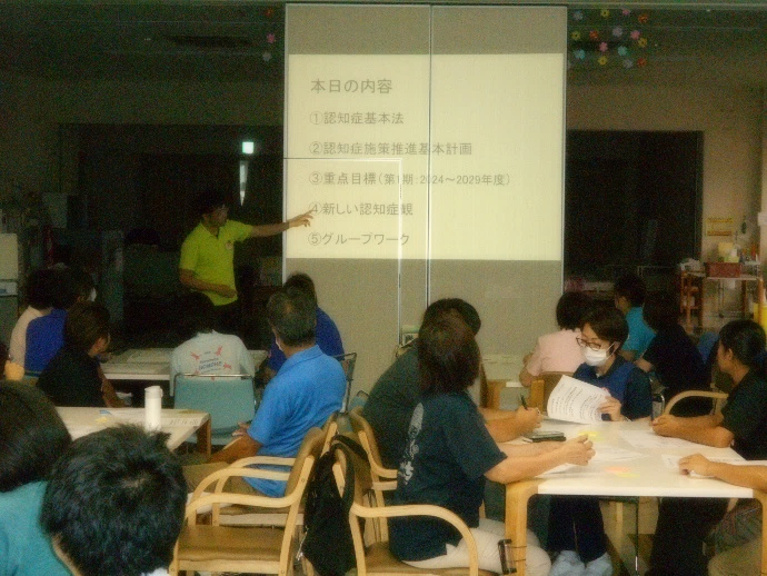 今回の研修内容は2024年1月1日に施行された「共生社会の実現を推進するための認知症基本法」について。