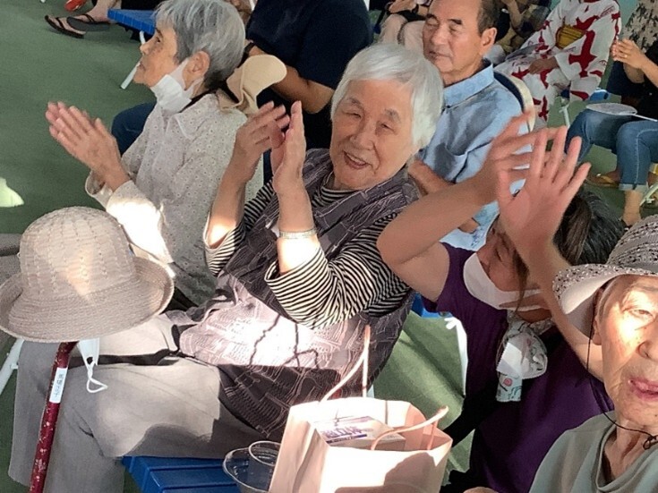 会場では地元業者を中心に7店舗の露店が出店でおいしいものも堪能し、お盆えんぶりや南部手踊り、沖縄民謡ライブの披露や、ディスコタイムでは、ご入居者も一緒に踊ってきました。