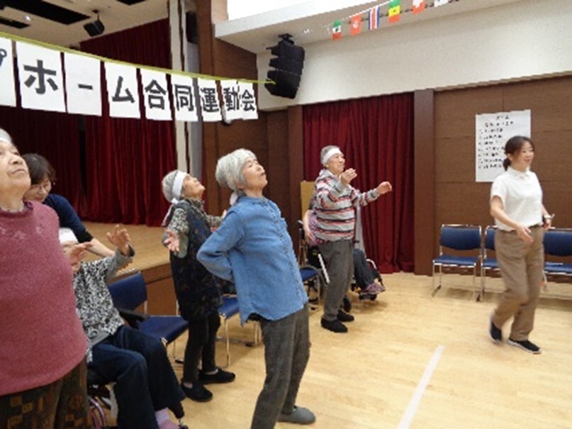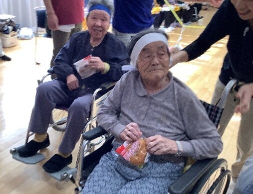と笑顔の2人に職員一同ほっこり❤ ご入居者・職員も一緒に踊りました。