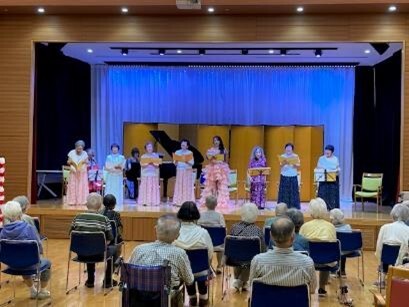 17日には「すみれコーラス」の皆さまが来訪され、「上を向いて歩こう」「見上げてごらん夜の星を」など懐かしの名曲を、美しいハーモニーで披露してくださいました。