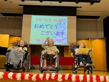 2025年9月13日に特別養護老人ホームにて、16日~18日の3日間はデイサービスセンターにて令和7年度ハピネス昭和の森敬老会を開催しました。開会にあたり、施設長より、ご入居者・ご利用者の皆さまのこれまでのご尽力に対する敬意と感謝の思いをお伝えし、今後も健やかにお過ごしいただきたいという願いを込めて、挨拶いたしました。その後、会場は温かい雰囲気に包まれ、和やかに式が始まり、節目を迎えられた皆さまを表彰いたしました。