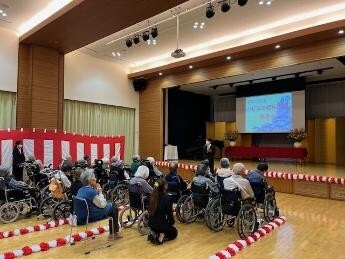 様々なボランティア団体の方々にお越しいただき、オカリナ演奏・日本舞踊・南京玉すだれ・獅子舞・マジックショーなどなど、新年を彩るのにふさわしい演目を披露していただきました。